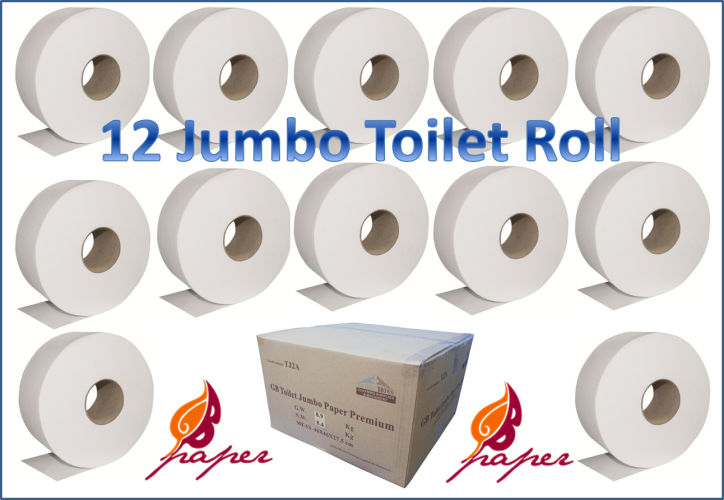 P2 TJ2 Toilet Jumbo Paper GB Roll Tissue, 12 Roll, Virgin Wood Pulp, White, Embossed, Perforated, 2 Ply, 700gm (9.20Kg, 47 x 47 x 28cm)